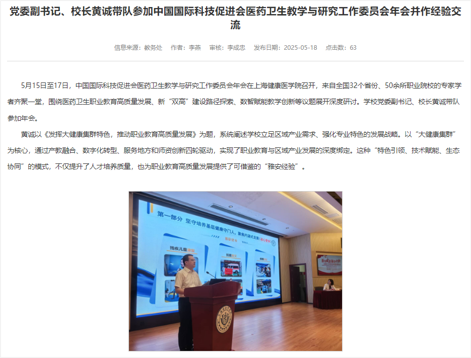 参加中国国际科技促进会医药卫生教学与研究工作委员会年会并作经验交流