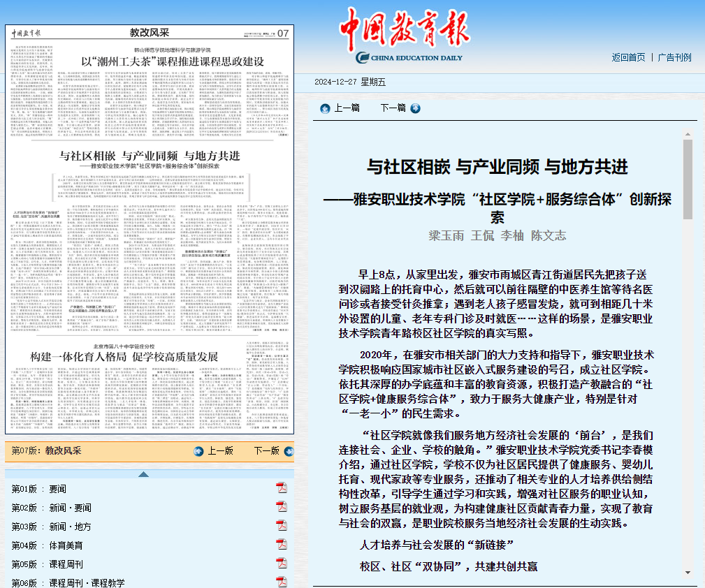 ____雅安职业技术学院‘社区学院+服务综合体’创新探索”进行报道