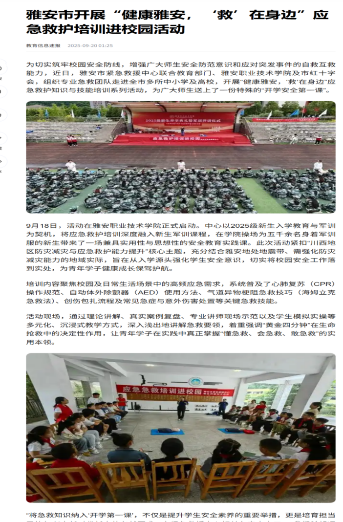雅安市开展“健康雅安,‘救’在身边”应急救护培训进校园活动