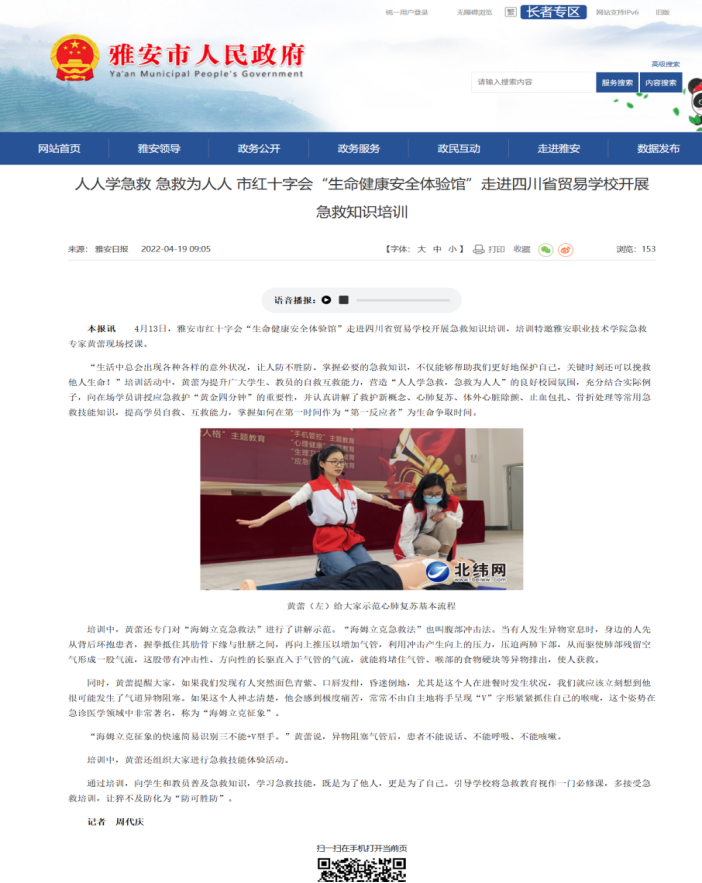 下一条:【雅安市人民政府】生命教育 “救”在身边 市红十字会开展红十字博爱周系列活动