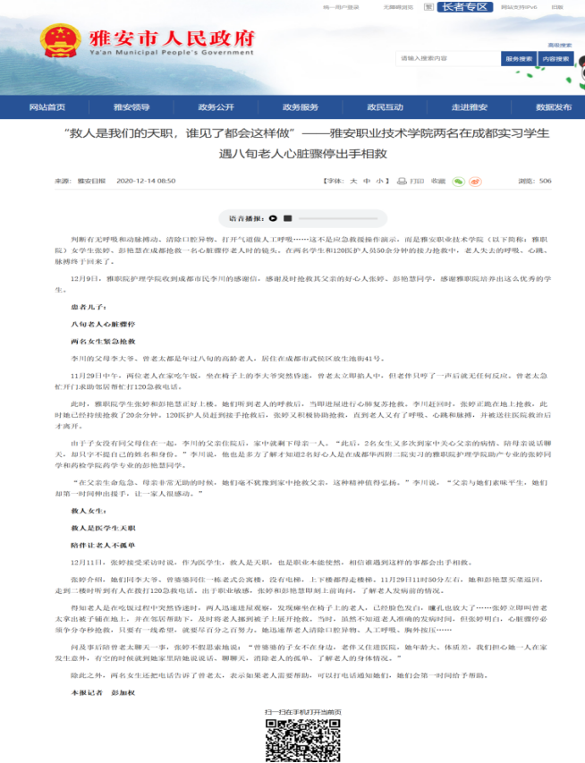 “救人是我们的天职,谁见了都会这样做”—雅安职业技术学院两名在成都实习学生遇八旬老人心脏骤停出手相救
