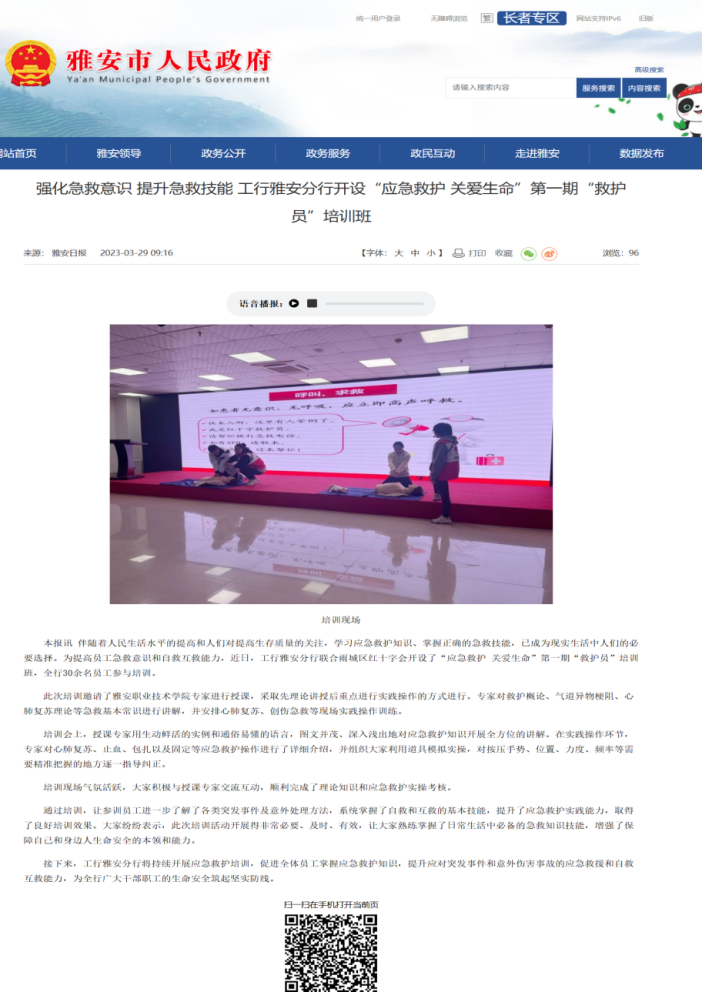 下一条:【雅安市人民政府官网】掌握急救本领 提高自救互救能力 市红十字会携手雅职院、市消防救援支队开展“学习急救知识、守护生命安全”主题活动