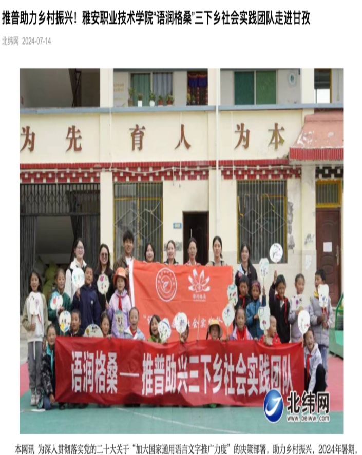 推管助力乡村振兴!雅安职业技术学院“”语润格桑“三下乡社会实践团队走进甘孜