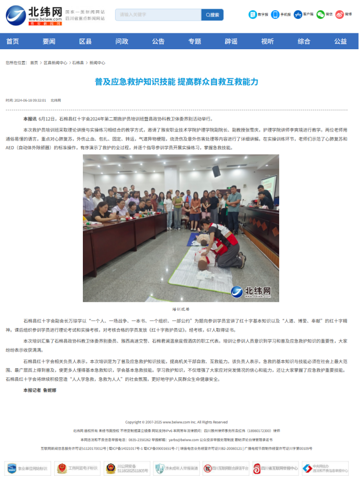普及应急救护知识技能 提高群众自救互救能力
