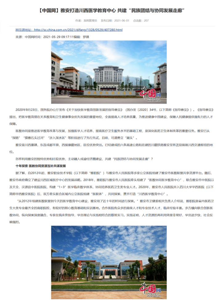 雅安打造川西医学教育中心 共建“民族团结与协同发展走廊”
