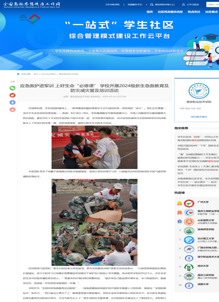 应急救护进军训 上好生命“必修课”学校开展2024级新生急救教育及防灾减灾普及培训活动