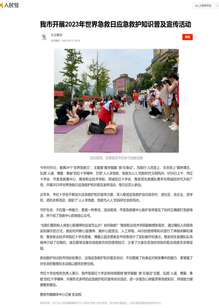 我市开展2023年世界急救日应急救护知识普及宣传活动