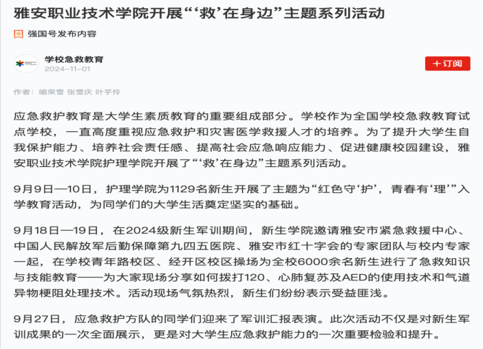 雅安职业技术学院开展“‘救’在身边”主题系列活动