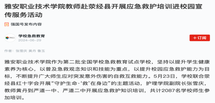雅安职业技术学院教师赴荥经县开展应急救护培训进校园宣传服务活动