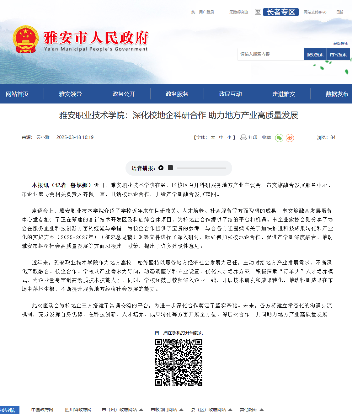 《雅安职业技术学院:深化校地企科研合作助力地方产业高质量发展》