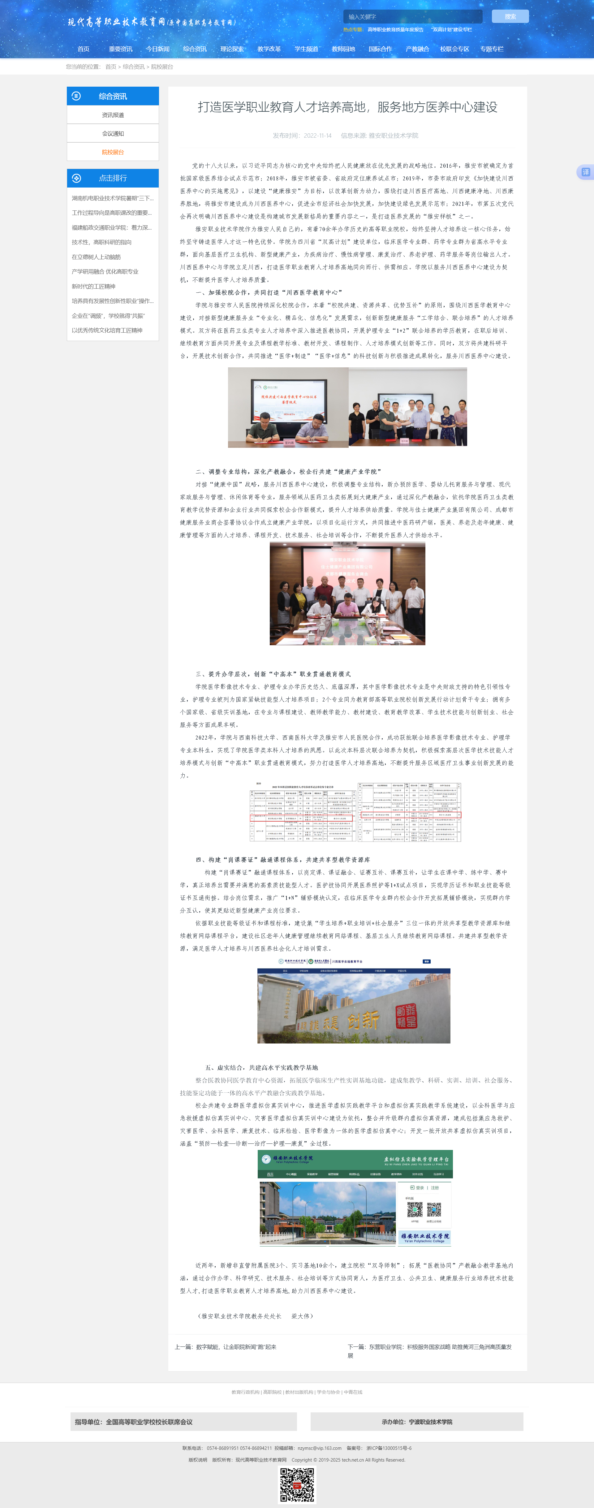《打造医学职业教育人才培养高地,服务地方医养中心建设》